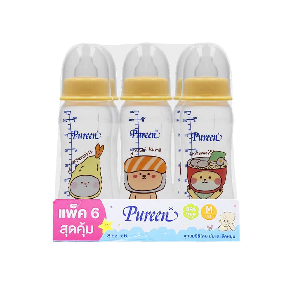 Pureen ขวดนมทรงโค้งสีเหลือง 8oz. แพ็ค 6 ขวด